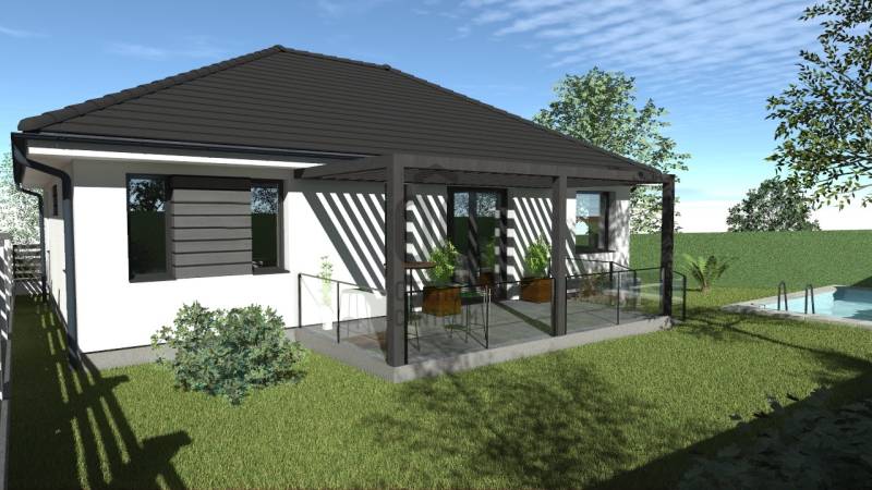 Maglódon a Központ közelében, de csendes mellékutcában, épülő modern lakóparkban kínálunk megvásárlásra egy FÖLDSZINTES kialakítású önálló családi házat 450 nm-es telekkel. Korszerű műszaki megoldások, megújuló energia, minimális rezsi, alacsony fenntartási költségek. A fűtést hőszivattyú biztosítja padlófűtéssel, H tarifás villanyóra (3x16 A), nyáron a kellemes hőmérsékletről inverteres hűtő-fűtő klíma gondoskodik, az ablakok elektromos antracit redőnyökkel lesznek felszerelve, a nyílászárók belül fehér, kívül antracit színű 3 rétegű üvegezésű műanyag ablakok. Telken belül viacolor autó beálló lesz kialakítva két autó részére, elektromos kapun jutunk be a kertbe. A ház okostéglából épül, hőszigetelt homlokzattal (20 cm szigetelés), a tetőt antracit színű betoncserép fedi. Az ingatlan belső elosztása a mai igényeknek maximálisan megfelel: tágas, világos nappali-konyha-étkező teraszon át kertkapcsolattal, három kényelmes méretű hálószoba, fürdőszoba, háztartási helyiség, külön mellékhelyiség, tároló, tágas előszoba. Földszintes kialakítása és megfelelő szobaszáma miatt kiváló lehetőség fiatalabb generációnak, gyermekekkel költözőknek és idősebb korosztálynak is, mivel házon belül nem kell lépcsőzni. A látványterveken látható bioklimatikus pergola a vételár részét képezi, minőségi, modern teraszfedés. A medence igény esetén egyéni megállapodás alapján kerül kivitelezésre. Az ingatlan várható átadása 2026. negyedik negyedéve. Csok hitel, start hitel igénybe vehető. A környék csendes, lakóparki szép környezet, kiváló elhelyezkedés: iskola, bevásárlási lehetőség, orvosi rendelő, gyógyszertár, városközpont 300 méterre található, gyalogosan is rövid sétával elérhető, ugyanígy a tömegközlekedés, buszmegálló is. 3 %-os hitel, zöld hitel, csok hitel felvehető!!! Az építkezés április 15-én kezdődik.