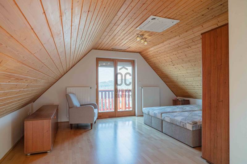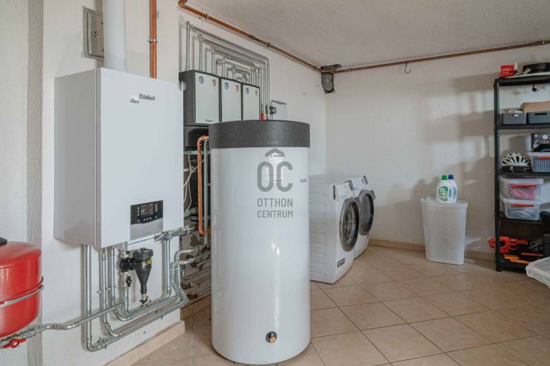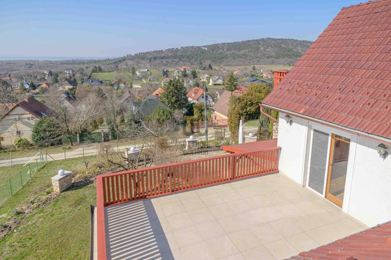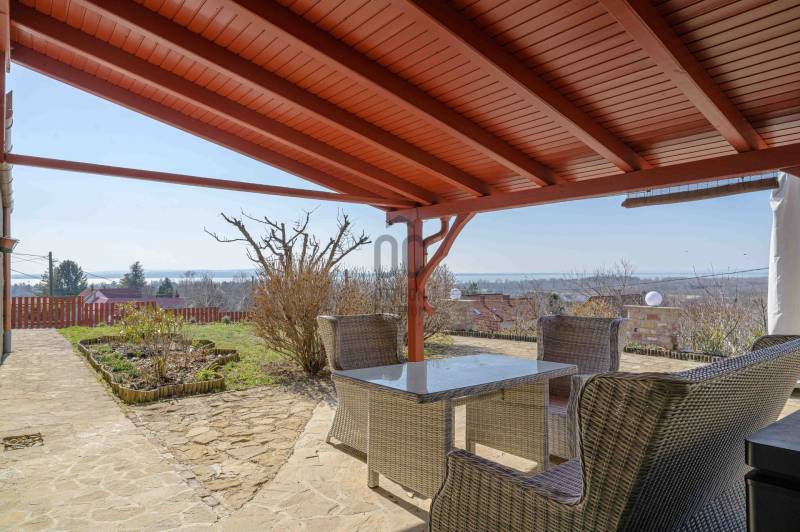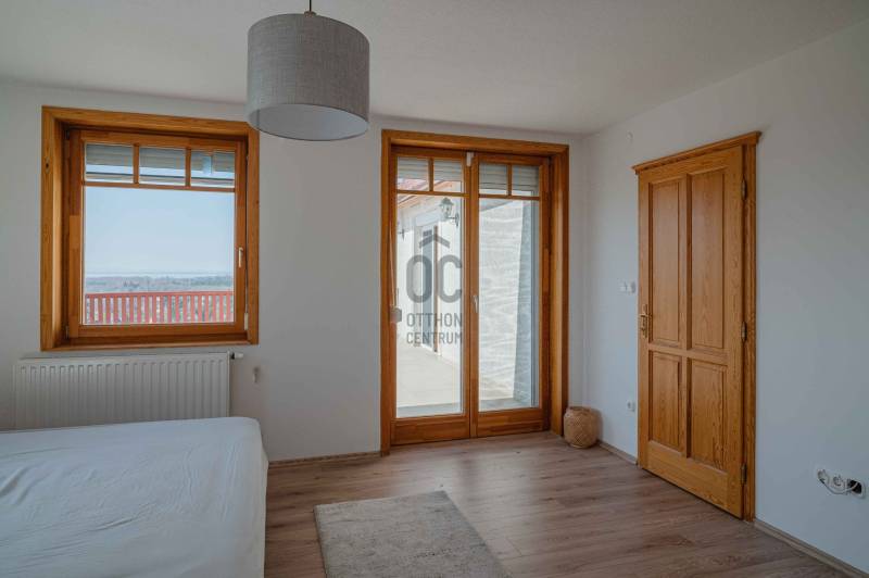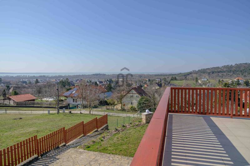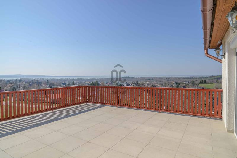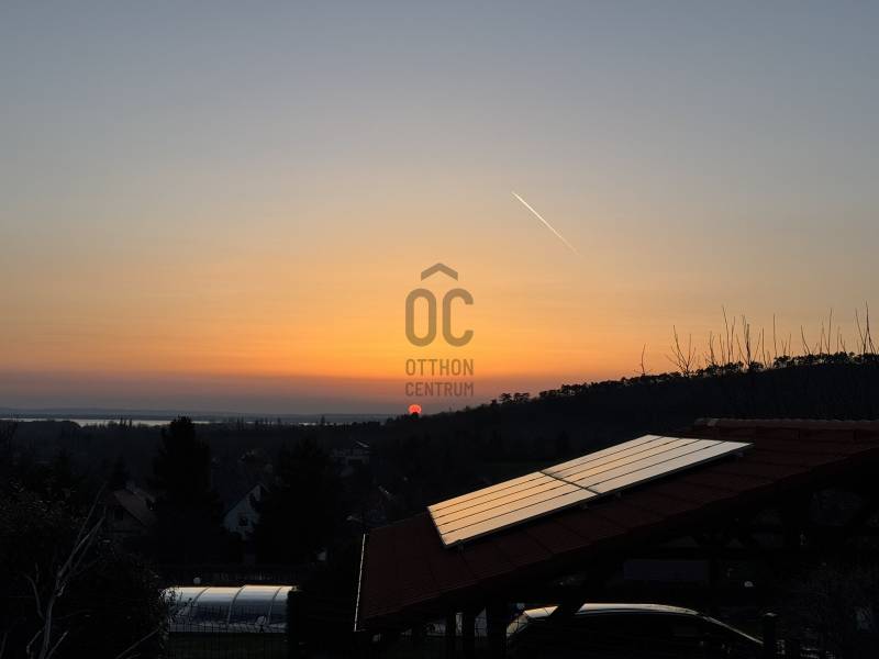 BALATONGYÖRÖKÖN VÁRJA ÚJ TULAJDONOSÁT EGY BELTERÜLETI, ÖSSZKÖZMŰVES, 2 GENERÁCIÓNAK IS MEGFELELŐ, LENYŰGÖZŐ LAKÓÉPÜLET, GRANDIÓZUS ÖRÖKPANORÁMÁVAL. AZ OTTHON CENTRUM KIEMELT AJÁNLATA !Csodás környezetben, egy szellősen beépített domboldal kiemelkedő részén található a 790 m2-es, ideális méretű telek. A gondosan tervezett kerben a dísznövények mellett meggy-, cseresznye-, barack-, diófa és fügebokor adja jóízű termését. A tiszta levegőt itt szinte \"harapni lehet\". Közel az erdő, de az 5 csillagos strand is mindössze negyedóra séta. Csendes, békés, biztonságos környék.Az ingatlanról - már a kertből is - kivételesen széles kilátás tárul elénk az ezerarcú, ezerszínű tóra - előtérben a Szent Mihály kápolnával - és a Keszthelyi hegység egyik legszebb részére. Az épület főbb ismérvei:2000-ben épült, a mesés panoráma ihlette tájolással. Itt minden a Balatonról szól! Nagyvonalúan kialakított tágas, barátságos terek jellemzik a házat.Néhány éve moderrnizálták a gépészetet, a legjobb Vaillant kombi gázkazánra cserélték a fűtőrendszert, 250 literes melegvíz tárolóval. A konyhai gépek is megújultak. Kamera - és riasztórendszer került beszerelésre. A korszerű nyílászárók fából készültek, szúnyoghálóval, redőnnyel ellátva.Kémény van, igény szerint kandalló, cserépkályha beépíthető. A 3 szinten megálmodott ház beosztása:Földszint: Árnyas teraszról nyílik a főbejárat egy méretes nyappaliba. Innen átmehetünk a dupla garázsba, egy részben leválasztott közlekedőből a konyhába, a nagy méretű háztartási helyiségbe/ tárolóba, és egy vendég mosdóba. (A háztartási helyiségből is van ajtó a garázshoz. )Kényelmes faburkolatú lépcső vezet a következő szintre, ahol egy 36 m2-es panoráma terasz hívogat. Mind a felső nappali, mind a nagyobbik hálószoba teraszkapcsolatos. A nagy hálóból nyíló, ugyancsak panorámát nyújtó fürdő és toalett jakuzzi káddal, zuhannyal és bidével felszerelt. További helyiségek egy vendéháló, második fürdő és egy kis tároló. Mivel ez a lakrész kívülről is megközelíthető és a nappaliban egy konyhasarok kialakításához alkalmas vízes kiállásokat is készítettek, két generáció életéhez vagy több család zavartalan nyaralásához is adottak a feltételek. Csupán érdekességként: a rusztikus dekor tégla falburkolatba pl. az 1800-as évekből származó. G E P (Gróf Eszterházi Pál ) jelölésű darabokat építettek be.A tetőtérben két háló és fürdő (toalettel) kapott helyet. A szobákból erkélyek nyílnak -már említeni sem kell, milyen kilátással.Összefoglalóan: 2 nappali, 4 háló, 4 fürdő 5 db wc van az épületben, + konyha, háztartási helyiség, dupla garázs.Ha megérintette ez a különleges ingatlan, további kérdései vannak, illetve megtekintené, kérem, hívjon / írjon a megadott elérhetőségeken.Ez az ingatlan a \"Felező csomag\" megbízási portfólióhoz tartozik. Részletek az Otthon Centrum weboldalán.