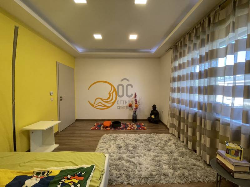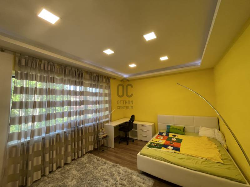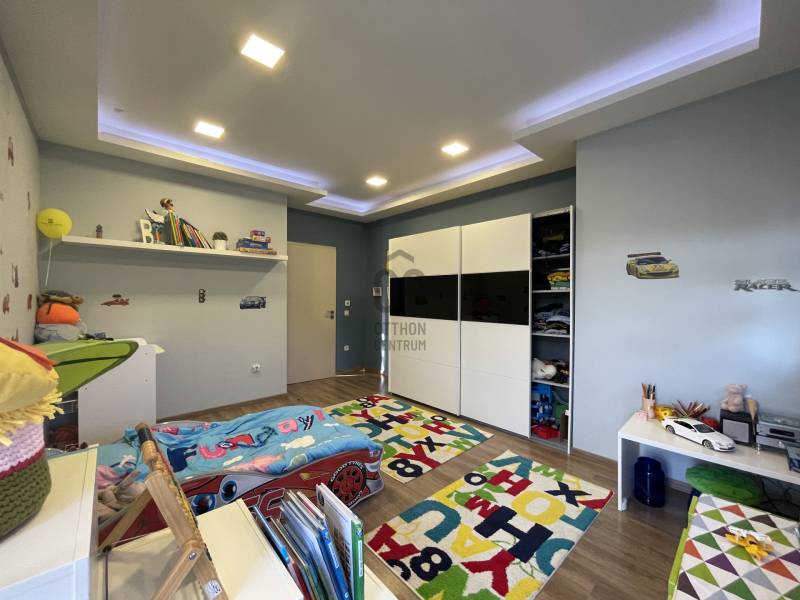 Debrecen Nyulas városrészének egyik legkedveltebb, csendes utcájában, a Nagyerdő közelében eladó egy 2017-ben épült, bruttó 285 m²-es, két szintes, prémium családi ház 720 m²-es telken.A ház átgondolt elrendezésű: nappali + 5 hálószoba + dolgozó, 3 fürdőszoba, valamint dupla garázs és számos kényelmi helyiség biztosítja a család minden igényét.A nappaliból nyíló fedett terasz és az emeleti erkélyek közvetlen kapcsolatot adnak a gondosan parkosított kerttel és a természet közelségével.MŰSZAKI TARTALOM – modern, fenntartható megoldások:* geotermikus hőszivattyús rendszer (mennyezet- és falfűtés/hűtés, padlófűtés)* napelemrendszer – rendkívül alacsony fenntartási költség* prémium, hő- és hangszigetelt nyílászárók, elektromos alumínium redőnnyel* riasztó és kamerarendszerBELSŐ KIALAKÍTÁS – kényelem és funkcionalitásFöldszint:- tágas nappali, látványos térelválasztással- gépesített, modern konyha- szülői lakrész saját fürdővel és gardróbbal- dolgozószoba- mosókonyha, vendégmosdó- dupla garázs, teraszkapcsolatEmelet:- 4 külön nyíló, világos hálószoba- 2 fürdőszoba (az egyikben infraszauna)- beépített gardróbok- 2 erkélyEz az ingatlan ideális választás azoknak, akik csendes, zöld környezetben, mégis a városhoz közel keresnek modern, alacsony fenntartású, hosszú távon értékálló otthont.