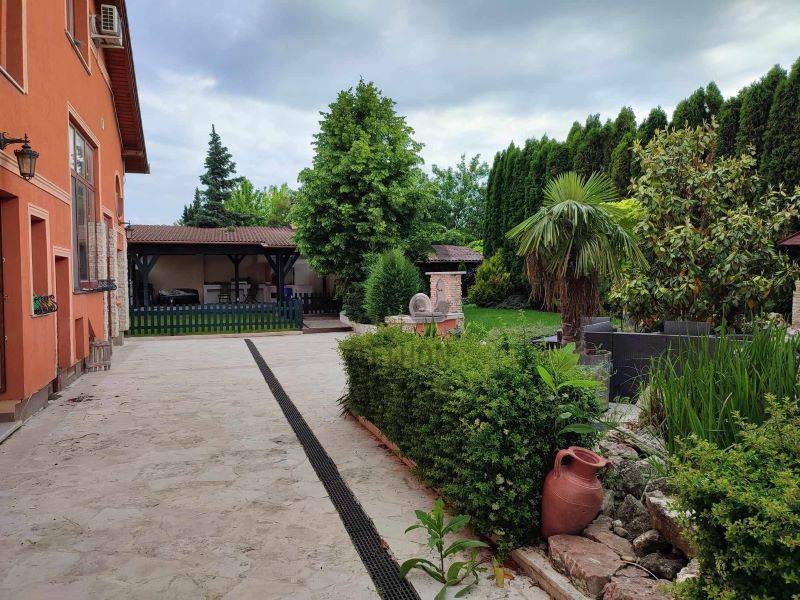 Megvételre kínálom ezt a 697 m2-en elhelyezkedő, 226 m2-es téglából épült, szinteltolásos családi házat, amelyen 1995-ben teljes felújítást végeztek.Az ingatlan 2 önálló bejárattal rendelkező lakrészt + önálló bejárattal rendelkező iroda helyiséget foglal magában. Az ingatlanban 8 szoba, 4 fürdőszoba, továbbá a kertben pagoda, sütögető, valamint kemence nagyméretű szaletliben, jakuzzi, szauna, kerti fürdőház található.A kerítés kővel burkolt, egyedi kapuval.Ezen kívül a kertben van még egy kerti tó is. Néhány fontos Jellemző az ingatlanról:Gépészet : állapota, kora jó, használható, fő egységek cseréje nem indokolt Légtechnika : részben légkondicionáltFűtés típusa : épület központiFűtés technológiája : gáz kazánHő leadó szerkezetek típusa: radiátorokFűtés szabályozás típusa: termosztátMeleg víz ellátás típusa: villanybojlerTetőszerkezet : magas tetőAlakja : nyereg tetőTetőszerkezet anyaga: fa fedélszékesTetőfedés : cserép fedésKülső nyílászárók anyaga : fa és műanyag szerkezetekKülső nyílászárók állapota : jóÜvegezés : 2 rétegű üvegezésNyílászárók gyártási éve, kora : 2015 Komfort fokozat összkomfort, triplakomfort Amennyiben megtetszett Önnek ez a nem mindennapi ingatlan, kérem keressen a megadott elérhetőségen!