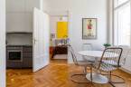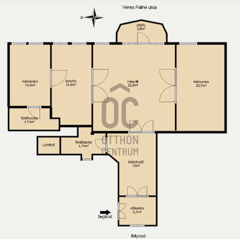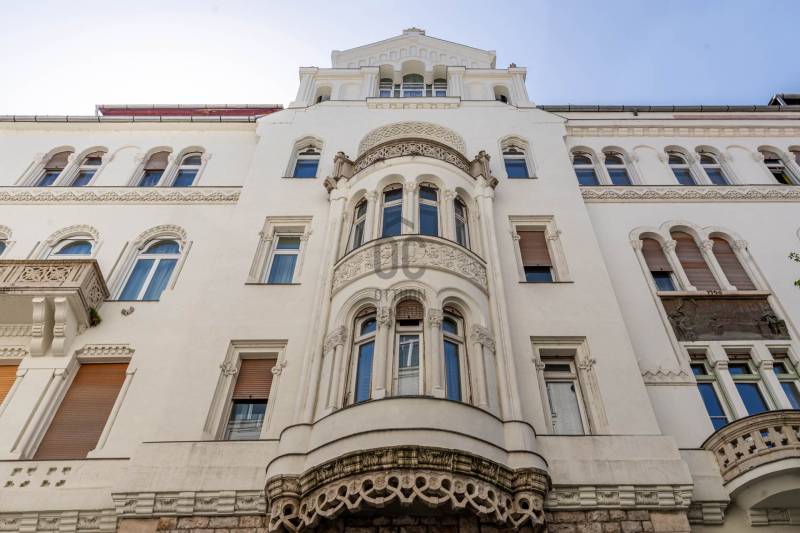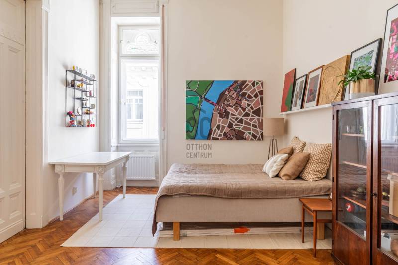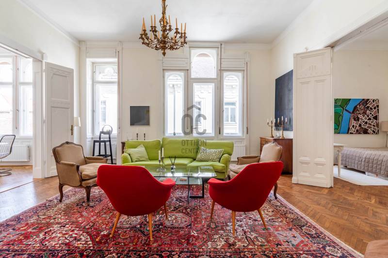 A belvárosban ritkán találni olyan nagypolgári lakást, ami egyszerre őrzi a klasszikus értékeket és valóban élhető, világos tereket kínál. Magas emelet, erkély, hatalmas ablakok és egy időtálló elegancia – ez a lakás pontosan ezt adja. Üdv itthon!RÖVID ÖSSZEFOGLALÓBudapest V. kerületében, a Veres Pálné utcában, a Fővám tér közelében, liftes társasház magas emeletén kiadó egy 113 m²-es + 3,8 m² erkélyes, nappali + 2 hálószobás, külön konyha-étkezős, 2 fürdőszobás, napfényes, klasszikus polgári lakás.Miért pont ez a lakás?- Nagypolgári hangulat: 4,2 m belmagasság, halszálkás parketta, díszes nyílászárók- Közel 36 m²-es nappali, 4 hatalmas ablakkal- Erkélyes – ritkaság ezen a környéken- Kiváló elosztás, akár külön lakrész is kialakítható- Világos, keleti tájolás – reggeli napfény az egész lakásban- Liftes, rendezett házOTTHONA lakás nagy alapterületének és átgondolt elrendezésének köszönhetően kényelmes, jól használható tereket kínál. A funkciók logikusan elkülönülnek, mégis egységes, áramló térérzet jellemzi.Az előszobából egy tágas közlekedő nyílik, amely dolgozóként is jól használható. Ebből érhető el a vendég fürdőszoba, amelynek különlegessége az eredeti, festett ólomüveg, így természetes fényt kap a lépcsőház felől.A nappali a lakás központi tere: közel 36 m² alapterületű, 4,2 méteres belmagassággal. Négy nagyméretű ablak néz a Veres Pálné utcára, keleti tájolásának köszönhetően reggel napfényben úszik. Az erkély a nappaliból nyílik, ahonnan hangulatos belvárosi panoráma tárul elénk: tetők, templom és a Veres Pálné utca karakteres látványa.A nappali két oldalán helyezkednek el a hálószobák, így jól szeparált, mégis egységes térszerkezet alakul ki. A kisebb hálószoba az étkező felől közelíthető meg, és saját fürdőszobával rendelkezik, így önálló egységként is használható. A nagyobb, 21 m²-es hálószoba tágas, jól berendezhető. TÁRSASHÁZA ház liftes, azonban a lift a földszintről néhány lépcsőn keresztül érhető el. A lakás a függőfolyosó elején helyezkedik el, közvetlenül a lépcsőház és a lift közelében.A közös költség 48 000 Ft, amely tartalmazza a szemétszállítást, lift karbantartást, takarítást és a felújítási alapot. Minden egyéb fogyasztás egyedi mérés alapján fizetendő. A fűtés modern, elektromos rendszerrel megoldott: a hidegburkolt helyiségekben padlófűtés, a többi helyiségben radiátoros hőleadás működik.LOKÁCIÓ – DÉL-BELVÁROSEz a környék Budapest egyik legélhetőbb része. Pár perc sétára a Duna-part, a Vásárcsarnok, kiváló éttermek és kávézók találhatók. A Szabadság híd és a Gellért-hegy közelsége miatt a mindennapok része lehet egy esti séta vagy kikapcsolódás.Kiváló közlekedés:- 47–49 villamos- M3, M4 metró, minden pár percen belül elérhetőMilyen feltételekkel bérelhető az ingatlan?- minimum 12 hónap- 2 havi kaució- gyerek és kisállat megengedett- dohányzás kizárólag az erkélyen- azonnali költözésHa egyedi, karakteres otthont keresel, amit nem jön szembe minden sarkon, akkor megtaláltad.Keress bátran és egyeztessünk megtekintési időpontot!----------------------------------------------A hirdetésben szereplő információk tájékoztató jellegűek. A tévedés és az árváltoztatás jogát fenntartjuk. Az esetleges elírásokért és technikai hibákért felelősséget nem vállalunk.