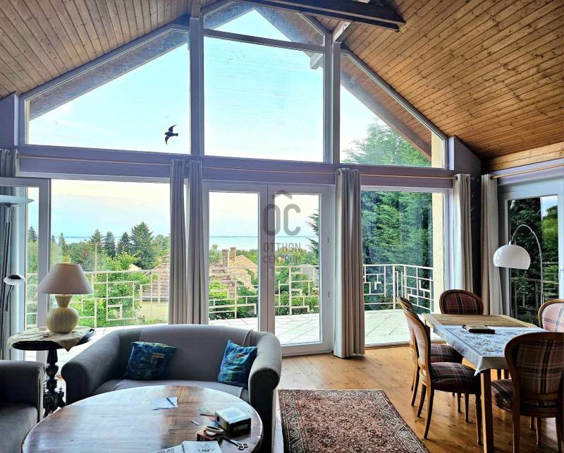Badacsonyban vált eladóvá ez a különleges atmoszférával rendelkező épület, mely egyedi kialakításával egyből kitűnik az őt körülölelő ingatlanok közül. A területről és a ház egészéből meseszép a panoráma a Balaton vizére, de ha ez nem lenne elég, a Badacsony is ott magasodik az épület mögött.A belterületi, 1519 négyzetméteres telken a jelenlegi tulajdonos tervei és álmai alapján készült el 2005-ben a hétvégi házként bejegyzett ingatlan – mely családi otthonnak is kitűnő választás lehet -. Az épület alapjául egy már meglévő bazaltkő pince szolgált, ez került átépítésre és bővítésre korszerű anyagok felhasználásával.A ház két szinten összesen 166 négyzetméternyi hasznos alapterülettel rendelkezik.A földszinten kialakított helyiségeket az előtérből közelíthetjük meg. Itt található egy 27 négyzetméteres, parasztfödémes, meghitt hálószoba, mely közvetlen kertkapcsolattal rendelkezik és akár két különálló hálóvá osztható. Mellette kapott helyet a lépcsőház, egy fürdőszoba, tároló, pince és egy műterem.Az emeleten lévő helyiségek közül a teljes üvegfelülettel ellátott nappali/műterem és a hozzá tartozó terasz olyan egyedi és megismételhetetlen hangulatot áraszt, hogy itt egyből az az érzése az embernek, hazaért...Ezt a nappali részt egészíti ki még egy közlekedő, hálószoba, fürdőszoba, konyha és étkező, valamint egy loggia is.Az épület mindkét szintjén beépítésre került egy-egy fatüzelésű kályha, így hűvösebb időszakban ezek szolgáltatják a meleget.A kert teljesen körbekerített, több autó egyidejű parkolása is megoldható telken belül.Az udvar teraszos kialakítású, akár egy medence, gyermek játszó vagy nyári konyha kiépítésére is bőven van még hely.Az épület melletti részen egy fedett, hangulatos kerti kiülő is helyet kapott, a kert alsó részén pedig egy téglából épült tárolót is építettek.A ház egész évben aszfaltos úton könnyen megközelíthető, a Balaton partjától gyalogosan 15 percre, a központtól 2 perces autóútra van.Ajánlom az ingatlant mindazok figyelmébe, akik a “béke szigetét” keresik távol a világ zajától. Az épület állandó lakhatásra és nyaralónak is egyaránt tökéletes választás lehet!Amennyiben kérdése merülne fel az épülettel kapcsolatban, vagy szeretné azt megtekinteni, kérem keressen megadott elérhetőségeim egyikén!Az adatok kizárólag a megbízóink által rendelkezésünkre bocsátott információkon alapulnak.Fentiekre tekintettel, az adatok teljességéért, helyességéért és aktualitásáért nem vállalunk felelősséget.Az árváltozás, adatmódosítás és közbeni értékesítés jogát fenntartjuk, mindezekért jogi felelősséget nem áll módunkban vállalni.