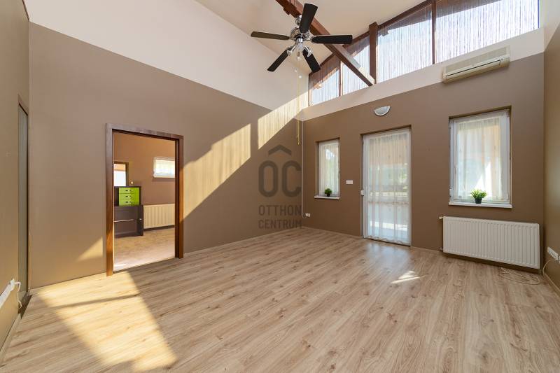 Az ingatlan, bemutató videóanyaggal rendelkezik, kérésére szívesen elküldöm a linket…Amennyiben úgy gondolja, hogy nem tudná élvezni a 730 nm-es telek adta előnyöket, a sok kerti munkálatok miatt, vagy hátrányt jelent Önnek a kialakított öntözőrendszer, mert szeret maga gondoskodni a növényei öntözéséről, illetve a két kerti tárolóhelyiség kialakítása is csak a „macerával” jár az Ön számára, úgy ezt a hirdetést ne olvassa tovább, mert biztosan nem ez az ingatlan lesz az új Otthona, Azonban, ha előnyt jelent az Ön számára a nappali + 4 hálószoba + galéria kialakítása, a 2 db fürdőszoba adta kényelem, vagy kedveli az extra méretű belmagasságot és a világos és tágas tereket, illetve ki tudja használni a két autó számára biztosított nyílt színi autóbeállót és a jelentős méretű pincehelyiséget, akkor ne keresgéljen tovább mert megtalálta, amit keresett!•Extra belmagasságú, egyedi kialakítás•21,3 nm-es klimatizált, ablakos galéria•Kitűnő helyiség kialakítás, tágas és világos terek•2010-ben épült, műszakilag felújított ház•Több ponton záródó alumínium biztonsági bejáratiajtó•2 rétegű, műanyag ablakok, redőnyökkel, szúnyoghálóval….•Mozgás és nyitás érzékelő riasztórendszer•2 db 3,5 kw-os hűtő-fűtő klímaberendezés•430 cm-es ÁTLAG belmagasság•9 nm + 12 nm-es kerti tárolók, árammal ellátva…•15 nm-es száraz pince•Kombi cirkó gázkazán, radiátoros hőleadókkal•Korszerű elektromos hálózat, víz és csatornarendszer•12 nm-es fedett + további 12 nm. betonozott, jelenleg fedettlen terasz, kertkapcsolattal•Rendkívüli közlekedési és infrastrukturális adottságok…Sorolhatnám még az érveket, de jöjjön és válasszon Ön érveket magának, hogy miért lesz ez a családiház az új OTTHONA!Higgye el, ezt Önnek is érdemes megtekintenie!Hívjon, mert lemarad!Ez az ingatlan a \"Felező csomag\" megbízási portfólióhoz tartozik. Részletek az Otthon Centrum weboldalán.