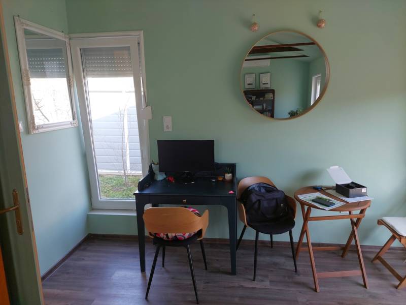 Eladó egy kis cuki új építésű szépen rendezett mini garzon méretű kertes ház Újfehértó Éva utcán.Ár: 24.990.000 Ft.Nézze meg videónkat is: http://youtu.be/I14me4HmOYkAz ingatlan alap méretei:- a telek mérete: 485nm,- a ház alapterülete: 36nm.- a tároló alapterületei: 2nmAz épület hasznos alapterülete 28nm melyben található:- nappali-konyha-ebédlő,- fürdőszoba.Ez a kis cuki ingatlan azok számára lehet ideális választás, akiknek megfelel a mini garzon méret és inkább új házba költöznének, mert nem akarnak bajlódni felújításokkal, de a jövőre nézve meg van a háznak a bővítési lehetősége is.A kertes ház 2024-ben épült beton alapon könnyűszerkezetes technológiát alkalmazva, melynek köszönhetően az épület bővítése rendkívül gyorsan és költséghatékonyan megoldható. A tetőszerkezete nyeregtető, zsindelyfedéssel ellátva. A fűtés a nappaliban hűtő-fűtő klímával van megoldva, a fürdőszobában pedig padlófűtést építettek be. Az épületben villany (1×32A), víz, és csatorna be van kötve, gázcsonk pedig a telken belül található. A ház rendkívül jó A+ energetikai kategóriába esik, így igen alacsony a rezsi költsége. Az épület jó minőségű ablakain és a bejárati ajtón távirányítással vezérelt elektromos redőnyök vannak. A konyhai részen a 3 hosszanti csíkban elhelyezett üvegtéglák jól bevilágított teret eredményeznek. Mivel az ingatlan gyakorlatilag új, és csak alkalomszerűen volt használva, azonnal beköltözhető, felújítást semmilyen formában sem igényel. A kerítés nagyon szépen kivitelezett, gépkocsival a kapun keresztül lehet beállni. Az első udvar nagy része térkövezett, autó beállásra alkalmas, valamint a bejárattal szemben van elhelyezve a szintén új rönkfa oszlopokból készült kerti kiülő pad.Az előkert részén helyezkedik el egy új kerti szerszámtároló, illetve itt lehet létrehozni egy kis konyhakertet is. A szépen gondozott hátsó kertben fiatal gyümölcsfák találhatók és ezen a területen, szükség esetén a ház további bővítése is lehetséges. A környék kifejezetten csendes, nyugodt kertvárosias. Bár az ingatlan előtt jelenleg még murvával borított út található, de a két szomszédos utca felől aszfaltozott úton közelíthető meg.FONTOS!Az ingatlan per és tehermentes, azonnal beköltözhető. Mivel az ingatlan melléképületként szerepel a nyilvántartásban, így normál jelzáloghitelre alkalmas!FIGYELEM!Az ingatlan Újfehértó központjától 10 percre található, így könnyen elérhetők az iskolák, óvodák, bölcsőde, orvosi rendelők, fogászat, gyógyszertár, bank, templom, az önkormányzati hivatal, a Városi uszoda és számtalan üzlethelyiség is. Továbbá a közelben található a SPAR, a PENNY és a LIDL bevásárló központok is.Újfehértó város jelenleg az ötödik legnépesebb város Szabolcs-Szatmár-Bereg vármegyében. Nyíregyházától körülbelül 16 kilométerrel délre, Debrecentől 35 kilométerrel északra, a Nyírség Hajdúság felé eső peremén fekszik. Két legfontosabb közúti megközelítési útvonala a 4-es főút, illetve az M3-as autópálya, ezeknek köszönhetően az ország távolabbi részei felől is könnyen megközelíthető.A hazai vasútvonalak közül a várost a Budapest–Debrecen–Nyíregyháza–Záhony-vasútvonal érinti, melynek egy megállási pontja van itt. A környező kisebb települések közül Hajdúdoroggal, Hajdúböszörménnyel, Nagykállóval, Nyíregyháza Butyka nevű különálló városrészével, Érpatakkal és Kálmánházával mellékutak kötik össze.Ha felkeltette érdeklődését, hívja irodánkat bizalommal!Ha hitelre van szüksége éljen ingyenes, személyre szabott hitel ügyintézési szolgáltatásunkkal is.
