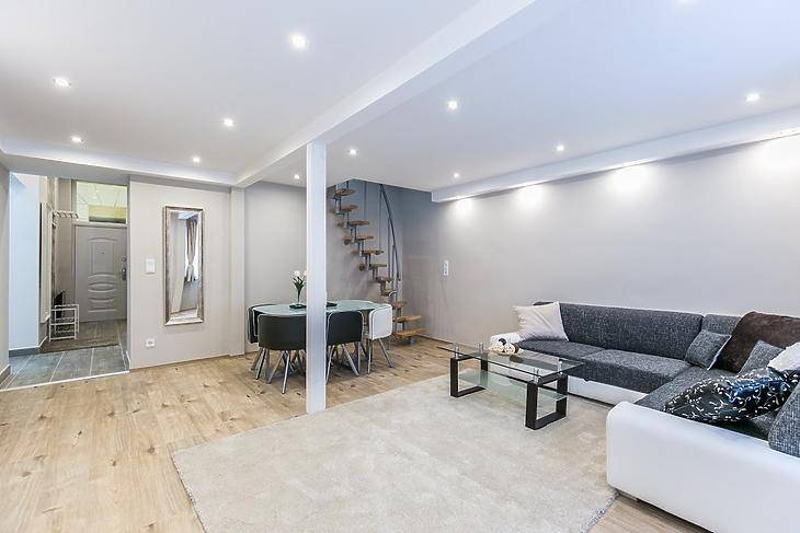 BELVÁROSI LAKÁS KIADÓ A KIRÁLY UTCÁBAN – IDEÁLIS EGYETEMISTÁKNAKBudapest belvárosában, kiváló közlekedés mellett, egy csendes, rendezett klasszikus épületben kiadó egy 115 m²-es, világos, kétszintes lakás, amely kifejezetten ideális egyetemisták vagy baráti társaságok számára.A lakás kiváló elosztásának köszönhetően 4 különnyíló hálószobával rendelkezik, mindegyik saját fürdőszobával, így minden lakó számára biztosított a teljes privát tér. Két szoba galériás fekvőrésszel kialakított, míg a másik két háló a felső szinten található.A lakásban tágas, különálló nappali és egy teljesen felszerelt, külön konyha is helyet kapott, így a közös terek kényelmesen használhatók anélkül, hogy zavarnák egymást a lakók. A háztartási helyiség további praktikusságot biztosít a mindennapokhoz.A lakás minden hálószobája klimatizált, a fűtés modern elektromos panelekkel megoldott.Bérleti díj: 1600 EUR / hóKözös költség: 30.000 Ft (7.500 Ft / fő)Rezsi: kb. 80.000 Ft (20.000 Ft / fő)Azonnal költözhető 2 havi kaució és tárgyhavi bérleti díj,valamint a közjegyzői költség fele ellenében.Kisállat tartása és a dohányzás a lakásban nem megengedett! Ideális választás, ha együtt költöznétek, de fontos számotokra a saját fürdő és a jól elkülönülő életterek. Az M1-es metró (Vörösmarty utca, Kodály körönd), a 4-6-os villamos, valamint több troli és buszmegálló néhány perc sétával elérhető, így a város bármely pontja gyorsan megközelíthető.