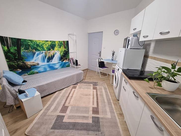 Kiadó egy teljesen felújított, 1 szobás lakás a Koszorú utcában.A lakás frissen felújított, azonnal költözhető, új bérlőjét keresi. Praktikus elrendezésű, csendes lakás, külön mérőórákkal, így a rezsi fogyasztás alapján fizetendő.Gépesített konyha teljesen új készülékekkel: hűtő, mikrohullámú sütő, indukciós főzőlap.Közös költség: 6 400 FtBérleti díj: 150 000 Ft / hó