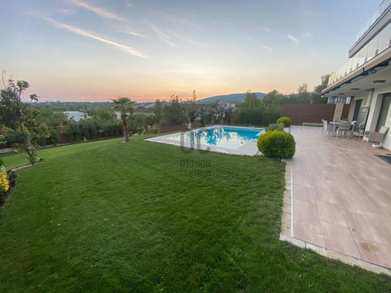 Eladó Örök Panorámás, 800 m²-es Saját Kertkapcsolatos Lakás Hosszúréten!Budapest 11. kerületében, Hosszúréten kínálunk eladásra egy páratlan földszinti, kertkapcsolatos lakást, amely 136 nm² hasznos alapterülettel, Brutto 256nm és 5 szobával rendelkezik. Az ingatlan legnagyobb előnye a 800 m²-es, kizárólagos használatú saját kert, amely a 120 m²-es teraszról közvetlenül elérhető, valamint egy privát medence is található benne. A ház örök panorámát biztosít, így a csodálatos kilátás egész évben élvezhető.Az ingatlanhoz 1 felszíni autóbeálló tartozik, valamint egy önálló tároló amelyek 10-10M-ba kerülnek és megvásárlása kötelező. A ház magas színvonalú kivitelezéssel készült, tökéletes választás azoknak, akik zöldövezeti luxust keresnek, mindössze néhány percnyire a várostól.Érdeklődés esetén keressen bizalommal privát üzenetben!