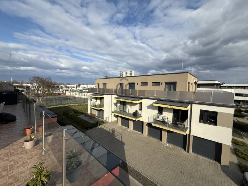 Eladó a Híd-Köz lakóparkban 102 m2, nappali plusz négy hálószobás, duplakomfortos penthouse lakás, a hozzá tartozó 118 m2 TERASSZAL!Az ingatlan tízlakásos társasház második emeletén helyezkedik el. Impozáns terasza U alakban öleli körbe a lakást, amelynek négy különnyíló szobájából,és a nappaliból a nap bármely időpontjában találunk akár napfényes, vagy árnyékos helyet a kellemes időtöltéshez.Hőszivattyús rendszer padló fűtés, mennyezet fűtés-hűtés funkciókkal szolgálja az ott lakók kényelmét.Nagycsaládoknak kitűnő választás! Az épület alatt külön helyrajzi számon nyilvántartott 21 m2 garázs is vásárolható. Ennek ára 14 millió forint.További információért, megtekintéssel kapcsolatos időpont egyeztetésért várom hívását!