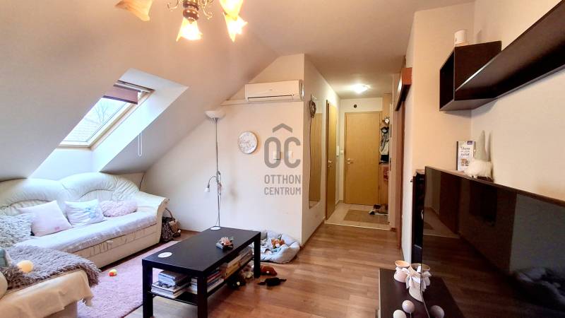 Ez a nettó 32,66 m²-es, kiváló állapotú, tetőtéri lakás tökéletes választás első otthonnak vagy befektetésnek.Az amerikai konyhás nappali + hálószoba elrendezés praktikus, jól élhető tereket biztosít a mindennapokhoz.A lakás fiatalos, modern hangulatát beépített bútorok és átgondolt tárolók teszik még kényelmesebbé, ami a vételár részét képezi.A nappali ideális helyszín baráti estékhez, közös főzésekhez vagy egy nyugodt, otthoni kikapcsolódáshoz.A komfortot tovább növeli:- házközponti fűtés egyedi méréssel – kiszámítható rezsi- klíma – kellemes hőmérséklet egész évbenA lakópark egyik nagy előnye a csendes, biztonságos környezet, miközben minden fontos dolog a közelben van:- bevásárlóközpont, orvosi rendelő, gyógyszertár stb.- kiváló közlekedés – gyors elérés a város bármely pontjáraEz a lakás nemcsak egy hely, ahol laksz, hanem egy életérzés – modern, kényelmes és városi.A lakásban jelenleg albérlő lakik, aki szívesen maradna:)Ne maradj le erről a népszerű lakóparki lehetőségről!Keress bizalommal, és nézzük meg együtt – lehet, hogy ez lesz az első saját otthonod!