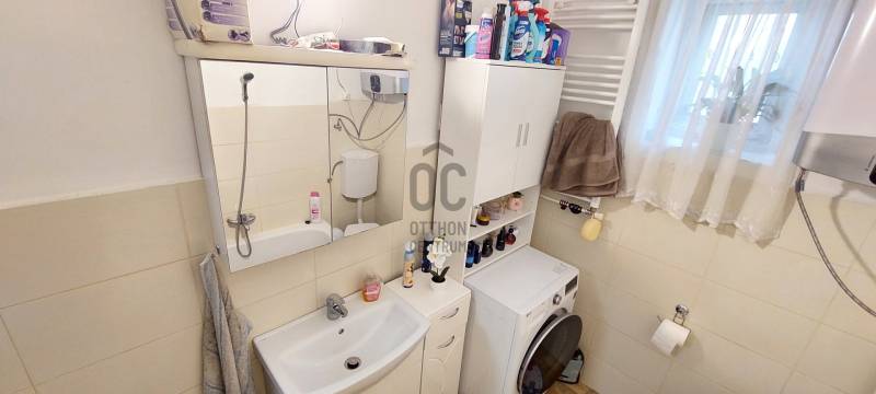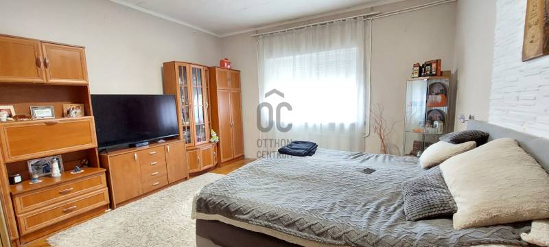 Dömsöd központjában, közel mindenhez egy 112 nm-es családi ház eladó, melyhez 30 nm-es terasz és egy vendégház rész (40 nm) is tartozik.Az ingatlan kiváló választás mindazok számára, akik nyugodt, mégis jól ellátott környezetben képzelik el jövőjüket, és fontos számukra a tágas élettér, a praktikusan kialakított lakófunkciók, valamint a sokoldalúan kihasználható udvar. Különösen ideális fiatal pároknak és családalapítóknak, akik hosszú távra keresnek otthont, akár több gyermekkel is.A főépület nettó 112 nm alapterületű, elrendezése jól átgondolt és élhető: 4 külön nyíló szoba biztosít megfelelő privát teret a család minden tagjának. A központi élettérként szolgáló tágas konyha-étkező ideális a mindennapi együttléthez, és ehhez kapcsolódik a fürdőszoba és a wc egy helyiségben. A ház egyik kiemelkedő eleme a 30 nm-es fedett terasz, amely szinte plusz élettérként funkcionál a melegebb hónapokban. Tökéletes helyszín családi étkezésekhez, baráti összejövetelekhez, vagy egyszerűen a nyugodt pihenéshez.Az ingatlan különlegessége a 40 nm-es, külön bejárattal rendelkező hátsó lakrész, amelyben konyha-étkező, egy szoba és egy fürdőszoba található. Ez a rész kiválóan alkalmas vendégek elszállásolására, több generáció együttélésére, de akár önálló élettérként is használható.A ház 2019-ben teljes körű felújításon esett át, amely során megújult a teljes közműhálózat (víz, villany, csatorna, gáz), korszerűsítették a fűtési rendszert, valamint a belső terek is átalakításra kerültek. Új műanyag nyílászárók és modern padlóburkolatok kerültek beépítésre, így nem felújítandó projektet veszel, hanem egy olyan otthont, ahol a lényegi műszaki dolgok már rendben vannak. Ez ma nem csak kényelmi, hanem komoly anyagi előny is.A telek mérete és kialakítása számos lehetőséget kínál: ideális választás azok számára, akik szeretnének kertészkedni, ugyanakkor elegendő hely áll rendelkezésre játszótér, medence vagy akár egy hangulatos sütögető kialakítására is. Az udvarban található tároló, garázs és fedett, nyitott beálló is, továbbá az épület egy része alatt pince biztosít további praktikus tárolási lehetőséget.Dömsöd egy folyamatosan fejlődő község, ahol az ellátottság bölcsőde, óvoda, iskola jó, szociális háló is rendben. Az 51-es főúton autóval Budapest könnyen elérhető, tömegközlekedés pedig busszal megoldott.Az ingatlan hitelezhető!Ez az ingatlan a \"Felező csomag\" megbízási portfólióhoz tartozik. Részletek az Otthon Centrum weboldalán.