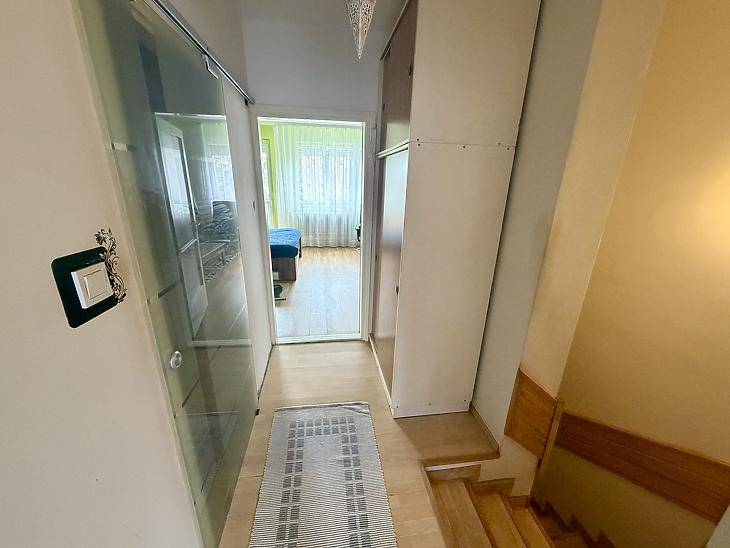 Vác egyik közkedvelt részén, Deákváron, csendes utcában kínálunk megvételre egy kiváló adottságokkal rendelkező, folyamatosan karbantartott sorházi ingatlant.A ház az elmúlt években több jelentős felújításon esett át: 2019-ben teljes tetőcsere történt, melynek során a bojler és a gázkazán is megújult. A nyílászárók mindenhol korszerű, dupla üvegezésű thermo műanyag ablakokra lettek cserélve, szúnyoghálóval ellátva. A szobákban burkolatcsere történt, a jelenlegi bútorzat pedig mindössze 5 éves, mely a vételár részét képezi.Az ingatlan elosztása rendkívül praktikus és élhető. A teljes ház alatt egy 53 nm-es, elektromos kapuval ellátott garázs húzódik, amely kényelmes parkolást és tárolási lehetőséget biztosít.A földszinten egy tágas előszoba fogad, ahonnan közvetlen kapcsolat nyílik a garázs felé. Ezen a szinten található a konyha, egy világos nappali, vendég WC és zuhanyzó, valamint elöl és hátul is fedett terasz, melyekről közvetlen kijárás nyílik a saját, elszeparált kertrészbe.Az emeleten egy kényelmes méretű fürdőszoba WC-vel, valamint két világos, erkélykapcsolatos szoba került kialakításra. A padlástér félig beépített, ablakokkal ellátott, így igény szerint további szobák kialakítására is kiváló lehetőséget kínál.A környék infrastruktúrája kiváló: boltok, tömegközlekedés, minden szükséges szolgáltatás pár perc sétával elérhető.Ez az ingatlan ideális választás családok számára, akik nyugodt környezetben, mégis jó elhelyezkedéssel keresnek otthont.Kérdésével, illetve megtekintése szándékával keressen bizalommal, amennyiben hitelre lenne szüksége, profi hitelközvetítő kollégáink díjmentesen állnak rendelkezésükre.Amennyiben eladásra lenne szüksége új ingatlanjának megvásárlásához, irodánk ingyenes értékbecslést vállal egész Vác területén.