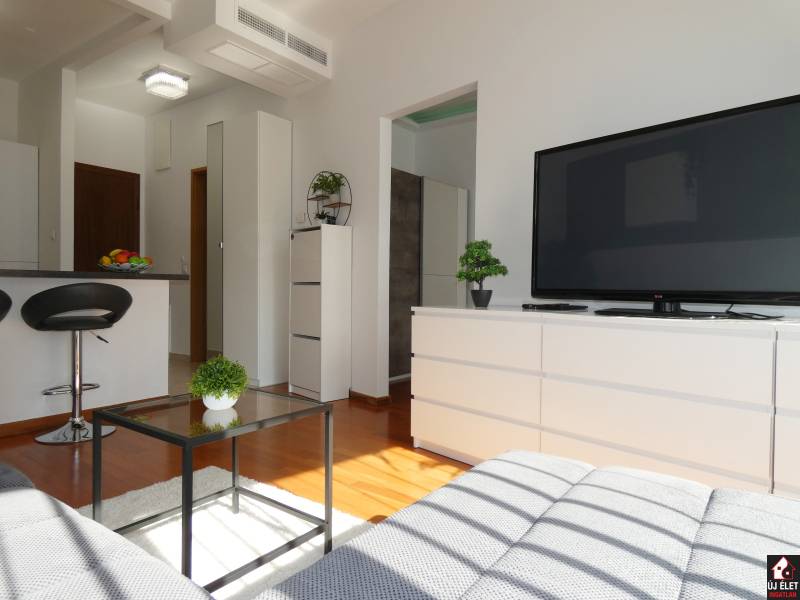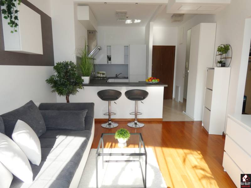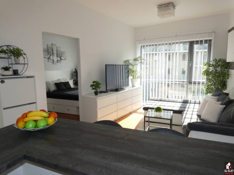 Eladó 13. kerületben, a Marina parton, a DUNA PARTJÁN, a Meder utcában, egy 40 m2-es, 1+1 szobás, ÚJSZERŰ, igényes, világos lakás, egy exkluzív PORTASZOLGÁLATTAL, FITNESS és WELLNESS RÉSZLEGGEL, SAJÁT MEDENCÉVEL rendelkező társasházban, a Prestige Towers-ben.A lakásban egy faltól falig és egyben földig érő ablakkal rendelkező amerikai konyhás nappali, egy színes hangulatfényekkel is megbolondított hálószoba és egy hidromasszázs káddal rendelkező fürdőszoba található.A fűtés és a hűtés házközponti, egyedi méréssel. Fan-coil klíma rendszerrel. A fürdőben padlófűtés van.Ez a D-K-i fekvésű lakás, az egyik 8 emeletes épület 2. emeletén, egy 3 lakásos folyosón található. A Prestige Towers egy 2007-ben épült, 4 db toronyépületből álló komplexum a Duna parton, az öbölnél, 50 méterre a víztől.A projekt a Marina Part fejlesztésének egyik ikonikus eleme! Kifejezetten luxus kategóriás lakóépület.Számos szolgáltatást nyújt a lakóknak. Pl. a kondi terem, a finn szauna, az infraszauna, gőzkabin és persze a kültéri medence használata. Vagy ilyen a 24 órás őrszolgálat, a napközbeni recepciós szolgálat, akik pl. a csomagok átvételét is meg tudják oldani.Ezeket a szolgáltatásokat magában foglalja a közös költség!A Duna parti sétány közvetlenül a lakópark mellett található. Itt lehet sétálni, futni,biciklizni, stb.Az épület mellett található a yacht kikötő is, a fantasztikus Melba étteremmel, és 2-3 perc sétára van a Duna Pláza Bevásárlóközpont!Közlekedése kiváló. A belvárostól forgatagától csupán 10 percnyi autóútra található, ugyanakkor néhány perc sétára van a METRÓ, mely a város bármely pontjára elviszi.A Marina part nem csupán a Duna part legmodernebb városrésze, ez egy exkluzív oázis, ahol minden generáció ideális otthonra találhat. ...és nem csak egy otthonra. Itt egy életstílus várja!A lakás ára a nagybútorokkal és gépekkel, TV-vel együtt értendő.Kérem, nézze meg a videót is!Hívjon, akár az esti órákban, akár hétvégén is!