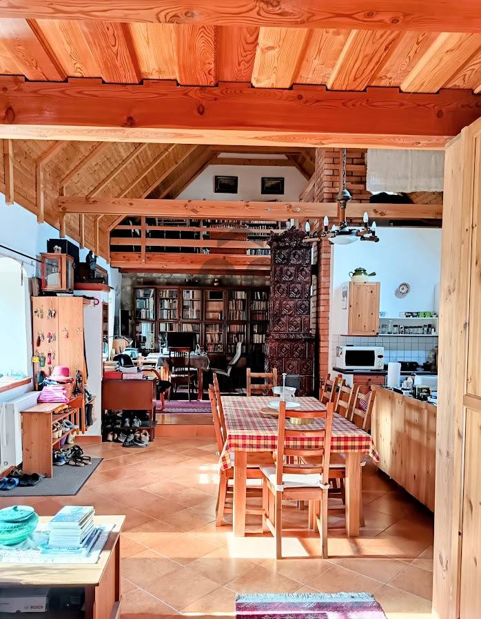 Kiemelt megbízás az Otthon Centrum Kínálatában!A ház 150 m2-es hasznos területű.Egy 35 m2-es önálló apartman van benne külön bejárattal továbbá még két hálószoba a galérián, két konyha, étkező, nappali szoba és három fürdőszoba valamint egy kamra.A ház 1820 ban épült, 2006- ban tejleskörűen fel lett újítva a műemlék védelem felügyelete mellett.Előírás szerinti szigetelést kapott a ház továbbá új fa nyílászárókat.Gáz cirkós fűtés van ami életvitelszerű használatnál havi 16000 Ft költséget jelent.Van a házban két darab újra rakott antik cserép kályha is ami kiváló alternatív lehetőséget jelenthet.A házba 3x25 Amper van bekötve.A főépülettel szemben helyezkedik el egy 50 m2-es melléképület ami jelenleg tároló és barkács műhely.Kettő garázs és egy fedett beálló van még az udvarban,Az összesen 3128 m2-es ősfás telek számtalan dologra teszi alkalmassá az ingatlant.Barnag félúton helyezkedik el Veszprém és a Balaton között.A műemlék védett házak napról napra újulnak meg, A településen intelligens igényes emberek élnek.Amennyiben érdekli az ingatlan kérem hívjon.Ez az ingatlan a \"Felező csomag\" megbízási portfólióhoz tartozik. Részletek az Otthon Centrum weboldalán.