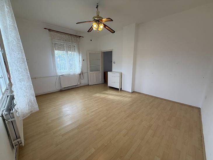 XVII. KERÜLETBEN: RÁKOSCSABÁN, CSENDES MELLÉKUTCÁBAN, ELADÓ EGY 89 M2-ES, KÖZEPES ÁLLAPOTÚ IKERHÁZFÉL, 235 M2-ES TELEKKEL.A HÁZ JELLEMZŐI: A ház téglából épült, beton alappal és beton födémmel rendelkezik. A nyílászárók részben cserélve lettek műanyagra. A villanyvezetékek cseréje megtörtént.A fűtésről és melegvíz ellátásról gázcirkó gondoskodik.A hálószobák parkettásak, a többi helyiség járólappal burkolt. ELRENDEZÉS: Földszint: Nappali, konyha, kamra, kádas fürdőszoba + wc, előszoba.Emelet: 2 szoba, fürdőszoba, közlekedő.A KÖRNYÉK: Rákoscsaba csendes mellékutcájában, jó közlekedésnél. A közelben, iskola, óvoda, játszótér, orvosi rendelő, gyógyszertár, számos bevásárlási lehetőség.Az M0-ás autópálya pár perc alatt közelíthető meg. A közelben, pár perc sétával a 169 E és a 269, járatok megállója és a 956 éjszakai busz megállója található. IRÁNYÁR: 80 M FT VEVŐINK RÉSZÉRE A KÖZVETÍTÉS DÍJTALAN!A hirdetésben szereplő adatok tájékoztató jellegűek.