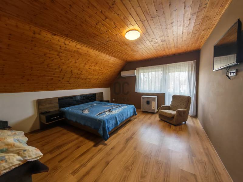 Ha hosszú távú befektetésben gondolkodik, vagy akár nagyobb családjának, két generációnak keres ideális otthont, ez a Siófok Sóstó városrészében kínált ingatlan tökéletes választás lehet. Mindössze 500 méterre található a Balatontól, a strand 900 méterre van, Siófok központja pedig 10 km-re.Eladásra kínálok egy jelenleg is működő, stabil vendégkörrel rendelkező, 4 apartmanból álló családi házat, amely kiválóan alkalmas nyaraltatásra és kiadásra.A 2004-ben épült, két szintes, szigetelt téglaépítésű ingatlan 326 m² hasznos alapterülettel rendelkezik, és egy 815 m²-es, önálló, parkosított telken helyezkedik el.A földszinten két 97 nm-es apartman található, mindkettő 2 hálószobás és tágas nappalis, az emeleten pedig további két 66 m²-es, 3 szobás apartman biztosít kényelmes elhelyezést a vendégeknek vagy a család két generációjának. Mindegyik egységhez saját konyha és zuhanyzós fürdőszoba tartozik.Az ingatlan teljesen berendezett, alacsony fenntartású, klimatizált, így azonnal üzemeltethető. Fűtése egyedi gázfűtéssel, infrapanelekkel és hűtő-fűtő klímával biztosított. A hőszigetelt nyílászárók redőnnyel és rovarhálóval felszereltek, a cseréptetőn elhelyezett napelemrendszernek köszönhetően az ingatlannak nincs villanyszámlája. A biztonságot kamerával ellátott riasztórendszer garantálja.A ház csendes utcában, zöldövezeti környezetben található. A parkosított kertben grillezőhely és egy kétszemélyes garázs is rendelkezésre áll, amely jelenleg tárolóként funkcionál. A térkövezett udvarban akár 10 autó számára biztosított a parkolás.Ez az ingatlan ideális választás akár saját használatra nagyobb családnak, két generáció részére, vagy nyaraltatásra, kiadásra is, biztos jövedelmet kínálva. A megtekintés előre egyeztetett időpontban, főként hétvégén lehetséges.Kérem, hívjon a részletekért a hét bármelyik napján!