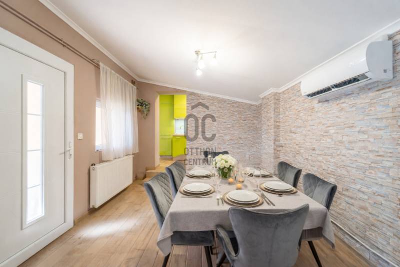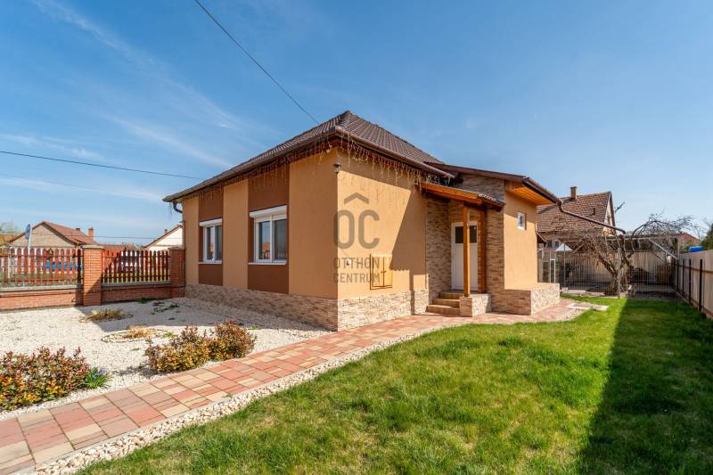 Hódmezővásárhely kertvárosias, nyugodt részén, Kincses-telepen eladó egy igényesen felújított 4 szobás családi ház!Főbb jellemzők:• tégla falazat A házba lépve a praktikus előtérbe érünk, ami kényelmes tárolást biztosít cipők, kabátok, táskák tárolására. • nappali+ 3 szoba, A három hálószoba közül az egyik a ház nyugodtabb, hátsó részében helyezkedik el, így tökéletes választás lehet szülői hálónak vagy vendégszobának. Ráadásul egy kisebb átalakítással – a nyári konyhával összenyitva – akár külön lakrész is kialakítható. Két szobában a padlószőnyeg alatt, szép állapotú parketta található.• nettó 125,8 m2 alapterület (lakórész:96,5nm)• 440 m2-es, rendezett telek • 2020-ban teljes körű felújítás, megújult:o víz- és villamoshálózat o műanyag nyílászárók o tető: új cseréplécek, fólia és Bramac cserepeko burkolatok (szobákban padlószőnyeg alatt szép állapotú parketta, többi helyiségben hidegburkolat)o konyhabútorok teljesen új állapotúakA ház elosztásaA házba lépve a praktikus előtérbe érünk, ami kényelmes tárolást biztosít cipők, kabátok, táskák tárolására.3 hálószoba, amelyből egy a ház végében található, ami kiváló vendégszobának vagy szülői hálószobának is. Kis átalakítással a nyári konyhával egybe nyitva, külön lakrész is kialakítható. Fürdőszobában kád és zuhanyzó is található, két mosdó, külön helyiségben és a fürdőben is Műszaki tartalom:• kondenzációs kazán (fűtés + meleg víz) • radiátoros hőleadás • 2 db hűtő-fűtő klíma • 3×16 A áramlekötés Udvar és extrák:• automata öntözőrendszer • elektromos úszókapu • térkövezett udvar • 17,4 nm fedett terasz • nyári konyha • 5 × 5,5 m-es garázs • ház mögött térkövezett parkolási lehetőség • saroktelek Lokáció:Hódmezővásárhely északi részén található, falusias jellegű városrész, minden szolgáltatás elérhető közelségben:• buszmegálló 300 m • óvoda, iskola, orvosi rendelő 1 km-en belülAzonnal költözhető!Támogatott hitelre nem alkalmas (Otthon start, CSOK+)Irányár: 69.000.000 FtMegbízható közvetítéssel, teljes körű ügyintézéssel!
