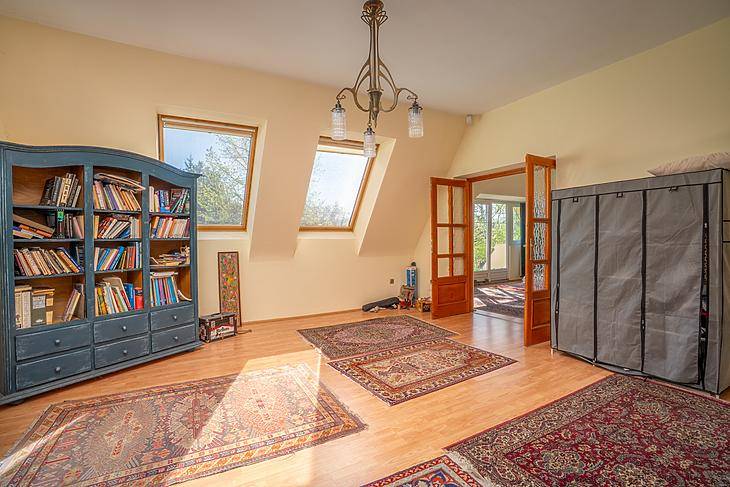Eladó exkluzív ÖNÁLLÓ családi ház Csillaghegy Dunai oldalán!A Dunától 400 méterre található 800 négyzetméteres telken elterülő, 2003-ban épült ház 2010-ben teljes felújításon esett át.A 450 m² lakóterülettel rendelkező ház három szintjét, melyet egy körtefából készült lépcsőház köti össze, összesen 4 szoba és 2 fürdő,egy gardrób, egy étkezős konyha, gépészet, mosókonyha, hatalmas közlekedő és két raktár.A 3 kocsis garázs mellett egy fedett autóbeálló biztosít tárolási lehetőséget.Rendelkezik a ház két erkéllyel és két terasszal is.A Korszerű fal- és padlófűtés/hűtés rendszert egy Német Viessmann kazán és Ipari teljesítményű klímarendszer biztosítja.Medencefűtés is elő van készítve a házban, valamint központi porszívó is kiépítésre került.Környékről:Közelben minden olyan szolgálatás megtalálható amire szüksége lehet a mindennapokban (kisebb élelmiszer boltok, piac, éttermek, gyógyszertárak). Gyerekes családoknak nagyon ideális hiszen játszóterek, Óvoda, Iskola, Egyetem van a közelben.Tömegközlekedés szempontjából is tökéletes hiszen pár perc sétára található számos buszmegálló, illetve a H5-ös hév.Ha pedig kikapcsolódásra vágyik pár perc sétatávra elérhető a Duna part, ahol számos lehetőség van kikapcsolódni, sétálni, szórakozni.FINANSZÍROZÁS:Banki finanszírozással is megvásárolható, melyben irodánk ingyenes tanácsadással áll rendelkezésükre!VEVŐINK RÉSZÉRE A KÖZVETÍTÉS DÍJTALAN!A beépített bútorzat a vételár részét képezi.A hirdetésben szereplő adatok tájékoztató jellegűek.