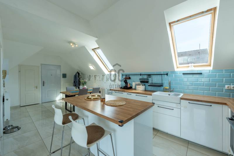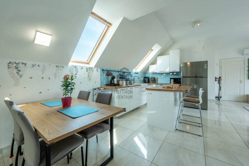 Eladó Budapest XVIII. kerületének erdőközeli részén, az Újpéteri városrészben egy 83 m²-es, világos tetőtéri lakás egy mindössze 3 albetétes társasházban.Az ingatlan különlegessége nemcsak a kiváló elrendezés és a kiváló közlekedés, hanem az is, hogy a környéken ritkaságnak számító, kedvező, 1 millió Ft/m² árkategóriában érhető el.A lakás praktikus kialakítású, ideális választás lehet akár családok, akár első lakásvásárlók számára.Elrendezésamerikai konyhás nappali2 külön nyíló szobafürdőszoba + WC (1 éve felújítva)külön WCgardrób szobaA nappaliból egy 4 m²-es, délnyugati tájolású erkély nyílik, amely ideális helyszín a pihenéshez vagy akár esti kikapcsolódáshoz. Emellett egy nagyobb, közös terasz is rendelkezésre áll.Főbb jellemzők83 m² lakótér45 m² saját kert használat1 db zárt udvari autóbeálló + utcai parkolási lehetőségprivát, zárt lépcsőház saját rakodóhellyelkülön tároló + padlás, amely részben burkolt, így jól használható extra tárolásravilágos, jó elosztású terekMűszaki állapot2025-ben korszerűsített gázcirkó fűtésradiátoros hőleadásfelújított fürdőszobafelújított gázvezeték és bélelt kémény1 db hűtő-fűtő klíma1 fázis, 32A elektromos hálózatgépesített, beépített konyhabútor és a hűtő a vételár részét képeziA lakás jelenlegi állapotában is jó, azonban minimális ráfordítással könnyedén modern, egyedi otthonná alakítható.KörnyezetA társasházban mindössze 2 lakás és 1 üzlethelyiség található, így a lakóközösség kifejezetten nyugodt és családias.A környék csendes, kertvárosi hangulatú, ugyanakkor a mindennapi élethez szükséges infrastruktúra könnyen elérhető:kiváló tömegközlekedés (buszmegálló nagyon közel)bevásárlási lehetőségekóvoda, iskolaorvosi rendelőAz ingatlan közvetlen közelében található a Péterhalmi-erdő, amely kiváló lehetőséget nyújt a természet közelségének élvezetére.Ideális választás kutyasétáltatáshoz, kiránduláshoz vagy akár egy hangulatos szabadtéri sütögetéshez is.Kinek ajánlom?első lakásvásárlóknakkisebb családoknakbefektetőknek a kedvező négyzetméterár miattazoknak, akik kertvárosi nyugalmat keresnek, mégis jó elérhetőséggelSzemélyesen is megtekintené?Ne csússzon le erről a ritka lehetőségről! Keressen bizalommal, és egyeztessünk időpontot a megtekintésre.Igény esetén hitelszakértőnk díjmentesen bemutatja az összes bank ajánlatát, és segít megtalálni az Ön számára legkedvezőbb finanszírozási megoldást, így a vásárlás gyorsan és biztonságosan lebonyolítható.