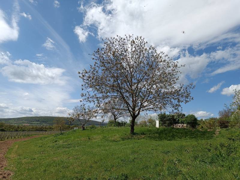 Dörgicse külterületén, az Agyaglik-dűlőben eladó ez a művelésből kivont, 507 nm-es terület, a rajta feltüntetett 56 nm-es kőházzal. Az épület kő falazatú, egy ideiglenes tetőzettel, helyére a jelenlegi mérettel megegyező gazdasági épület van megtervezve és engedélyeztetve! Tehát NEM KELL sem kifüggeszteni, sem szőlővel telepíteni, azonnal megkezdhető az építkezés!A telken áll az új áram bekötés, az úttal határos a telek, tehát egész évben kényelmesen megközelíthető.Egyéb közmű nincsen, zárt emésztős szennyvíztárolás lehetséges és kútfúrással (vagy ciszternával) megoldható a vízellátás. A terület minimálisan lejt, körülötte táblás mezőgazdasági területek vannak, szomszédságában kisebb régi pincék, amelyek sorra szépülnek meg. A Balaton is látszódik! ;)A képek között megtalálható a tervezett épület alaprajza és látványterve, de minden egyéb információ is rendelkezésre áll. Kevés ilyen lehetőséget találni, jöjjön, nézze meg!