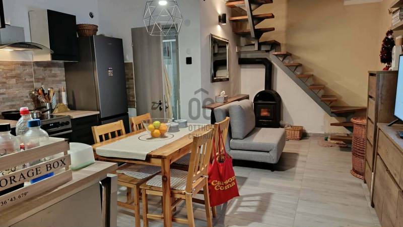 Harkányban a Tenkes csárda alatti dombon eladó egy lakható kisház nagy udvarral. A terület hivatalosan zártkert, de művelés alól kivett terület, 1421 négyzetméter, Van rajta egy 50 négyzetméteres kisház, 20 négyzetméteres fedett terasszal, és egy 45 négyzetméteres melléképület, amiben fél-szuterén szinten van két szoba, és egy pince. Két tárolóban lehet elhelyezni a kerti dolgokat, és két kocsinak van kialakítva autóbeálló.- Nagy fedett terasza van, - víz be van kötve, - H tarifa, vezérelt áram, és 32 A áll rendelkezésre,- Szennyvíztartálya 6 m3-es, - egy ciszterna is rendelkezésre áll,- a házban, és a melléképületben is hűtő-fűtő légkondi került kialakításra, ami befűti az egész teret, ez mellett a házban egy fatüzelésű kandallóval is lehet fűteni. - Az ablakok többsége műanyag, a belső térben a belmagasság 245 cm,- a konyha szép modern kialakítású, kényelmes, mosogatógéppel, villanytűzhellyel,- a fürdőszoba és a wc egy helyiségben van, zuhanyfülkés, - az emeletre, a tetőtérbe vezető lépcső kényelmes, - a hálószobában helyet kapott egy gardrób sarok is, - a hálószobából nyíló beüvegezett erkélyről nagyon szép a kilátás a Szársomlyóra, és a környező házakra, ellátni egészen a Siklósi várig. - a melléképületben két egymásból nyíló szoba található, egy pincével. Ebből a pincéből kis átalakítással a két házrész összenyitható, régen úgy volt. Ez a lakrész járólapozott, műanyag ablakos. Az ingatlan végig kavicsos úton megközelíthető, akár a legnagyobb hóban is. Az ingatlant javaslom nyaralónak, hobbikertnek, mert nagy kert tartozik hozzá. Megfelelő lehet családi háznak is, többen is laknak a környéken. A szomszédok kedvesek, segítőkészek. Hamar birtokba vehető, tehermentes ingatlan. Amennyiben meg szeretné tekinteni, egyeztessünk időpontot!