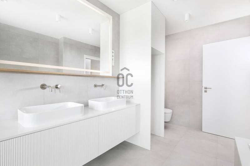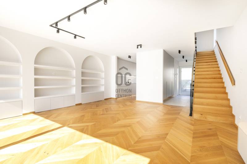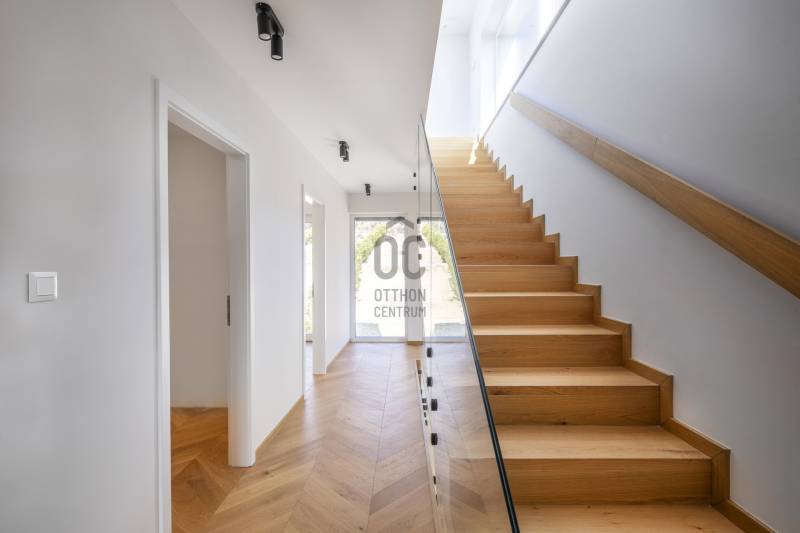 Minimalista formák, nagyvonalú terek és saját kert. Üdv itthon!RÖVID ÖSSZEFOGLALÓBudapest XII. kerületében, Budaörsi-hegy északkeleti peremén az Irhás árokban található ez a 143 m²-es, háromszintes sorházi otthon, amelyhez kb. 600 m² saját kert, 18 m² terasz, 50 m² erkély/tetőteraszos kültéri kapcsolatok, valamint fedett beállók és garázshelyek tartoznak. A déli tájolású, modern szemlélettel kialakított ingatlan hőszivattyús mennyezethűtéssel-fűtéssel és padlófűtéssel készült.LOKÁCIÓAz Irhás árok a budai hegyvidék egyik kevésbé sűrűn beépített, zöldövezeti része, ahol a természetes lejtések, erdősávok és nagyobb telkek határozzák meg a környezet karakterét. A topográfia nem csak látványban, hanem a mindennapi élet ritmusában is érezhető: nyugodtabb, szellősebb, kevésbé terhelt.Közlekedési szempontból a terület jól kapcsolódik a városhoz. A közelben elérhető buszjáratok (pl. 8E, 139) közvetlen kapcsolatot biztosítanak a Kelenföldi pályaudvar és a Széll Kálmán tér irányába, így metró- és vasúti átszállási lehetőségek is gyorsan elérhetők. Autóval a Budaörsi út és az M1–M7 bevezető szakasza néhány perc alatt megközelíthető, miközben az utca nem válik átmenő forgalom részévé.A mindennapi ellátottságot a közeli városrészek stabilan biztosítják. Gazdagréten és a környező területeken több bevásárlási lehetőség is elérhető, többek között az Aldi Gazdagrét, a Lidl Gazdagrét, valamint autóval rövid időn belül az Etele Plaza is, amely a környék egyik meghatározó kereskedelmi központja.A közvetlen közelben kisebb léptékű, valóban elérhető oktatási intézmények találhatók, amelyek a mindennapi élet szempontjából relevánsak. Ilyen például a Csillebérci Konkoly-Thege Miklós Általános Iskola, valamint több közeli óvoda a környező lakóövezetekben, amelyek autóval néhány percen belül elérhetők.Kiemelt erőssége a környéknek a természet közelsége. A budai erdők, kirándulóútvonalak és zöldterületek nem külön programként jelennek meg, hanem a mindennapok részévé válnak — legyen szó egy esti sétáról vagy hétvégi feltöltődésről.ÉPÜLET & OTTHONKortárs, fegyelmezett építészeti gondolkodás jellemzi az épületet. A tiszta vonalak, a nagy üvegfelületek és a világos homlokzat nem öncélú látványelemek, hanem egy jól átgondolt rendszer részei, ahol a fény, a térkapcsolatok és a hosszú távú használhatóság egyszerre kap szerepet.Műszaki oldalról is egy tudatosan megtervezett házról van szó. A hőszivattyús rendszer, a mennyezethűtés-fűtés és a padlófűtés együttese nemcsak komfortot, hanem kiszámítható működést és hosszú távú fenntarthatóságot is ad — ez az a háttér, ami nem látványos, mégis minden nap érezhető.Előkészítések szintjén is egy átgondolt rendszert kapunk: a tetőn és a hátsó kertben napelemes rendszer kialakítása elő van készítve, a teraszon pedig a padlófűtés csövezése is kialakításra került, amely egy későbbi télikert megvalósítását is lehetővé teszi.A használhatóságot tovább erősíti, hogy a garázs szekcionált, mérete lehetővé teszi tároló funkció kialakítását is, miközben a garázsban, a teraszon és a tetőteraszon is rendelkezésre áll vízkiállás. A kertben automata öntözőrendszer működik, a biztonsági rendszer kialakításához pedig kamera- és riasztó előkészítés is rendelkezésre áll.Belépve a tér hangulata azonnal érzékelhető. Nem túlzó, nem hivalkodó, inkább egyfajta nyugodt, rendezett elegancia jelenik meg, ahol minden a helyén van. Az arányok működnek, a terek jól értelmezhetők, és nem kell kompromisszumokat kötni a berendezhetőség vagy a használat során.Egy család számára ez az elrendezés valódi szabadságot ad. Van hely együtt lenni, de ugyanúgy megvan a lehetőség az elvonulásra is — amikor szükség van rá. A mindennapok ritmusa könnyen szervezhető, a terek nem korlátoznak, hanem támogatnak.Reggeli készülődés, közös vacsorák, hétvégi lassabb pillanatok — ezek a helyzetek itt nem szűkösen, hanem természetesen férnek el. A nagy üvegfelületeken át érkező fény folyamatosan változtatja a tér hangulatát, ami egy élő, reagáló környezetet ad, nem egy statikus lakást.A kert és a külső terek a mindennapi élet részévé válnak. Gyerekeknek biztonságos, jól belátható tér, a felnőtteknek pedig egy olyan plusz élettér, ami valóban használható — nem csak alkalomszerűen.Kinek ajánljuk?Akinek fontos a kontroll és az átláthatóság - itt egy jól működő rendszert kap.Aki az élményt és az otthonosságot keresi - annak a hangulat lesz meghatározó.Aki a racionalitást nézi - annak a műszaki tartalom és az elrendezés ad választ.Aki pedig egyszerűen csak jól szeretne élni - annak ez a ház hosszú távon is otthona lehet.Tekintse meg bemutató videónkat és a 3D virtuális sétát, amelyek még közelebb hozzák az otthon valódi hangulatát és térélményét.Kérdés, és megtekintési szándék esetén pedig keressen bizalommal!------------------------------Díjmentes, bankfüggetlen hiteltanácsadással támogatjuk vevő ügyfeleinket a számukra legelőnyösebb finanszírozási döntések meghozatalában. Opcionálisan igénybe vehető kiegészítő szolgáltatásainkkal – mint ügyvédi közreműködés, energetikai tanúsítvány vagy villamos biztonsági felülvizsgálat – teljes körű szakmai támogatást nyújtunk az adásvétel folyamatának minden egyes lépésénél.-----------------------------A hirdetésben szereplő információk tájékoztató jellegűek. A tévedés és az árváltoztatás jogát fenntartjuk. Az esetleges elírásokért és technikai hibákért felelősséget nem vállalunk.
