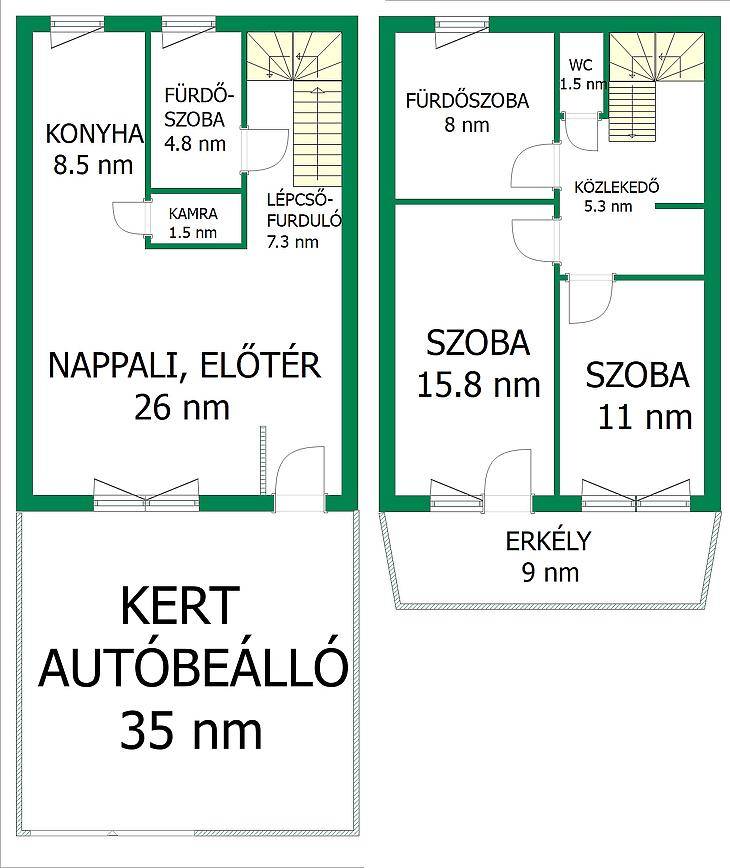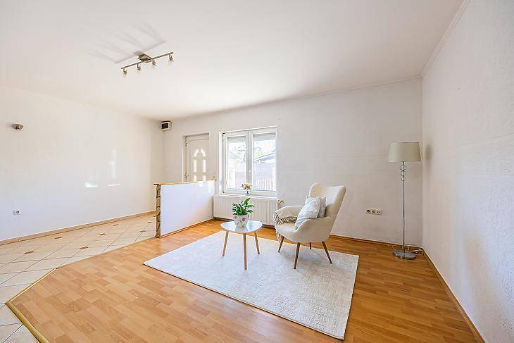 Dunakeszi központi részén, kis kertel, autóbeállóval rendelkező középső sorházi lakás eladó.A fenntartási költsége nagyon kedvező, a ház szigetelt, a fűtést kombi cirkó szolgálgattatja radiátoros hőleadással, és a nappaliban van egy hangulat és kiegészítő fűtésnek szolgáló fa tüzelésű kandalló.Belső két szinten, amerikai konyhás nappali saját kamrával, 2 db fürdőszoba és 2 db hálószoba van. A nagyobb szobából van kijárat a 9 nm-es nyugati fekvésű erkélyre.Minden közmű bent van a házban, és saját fő mérőórával rendelkezik.2008-ban épült, állapota jó a korának megfelelő, burkolatok, szaniterek, nyílászárók, konyhabútor jó állapotú.A lakás előtti kis kert térkővel lett burkolva.Irodánk díjmentesen, és bank függetlenül megtalálja Önnek a legjobb hitel megoldást amennyiben erre szükség lenne.Érdeklődni, telefonon, vagy üzenet formályában lehetséges.
