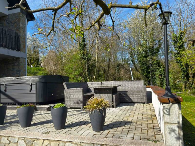 A Zalai-dombság a Dunántúl gyönyörű szeglete, 2-300 méteres magasságával, hullámzó, mégis szelíd lankáival igazi mesebeli világ tárul itt a kiránduló szeme elé. A térségben hangulatos, idilli kis falvak bújnak meg, a nyugalom szinte tapintható a csodálatos tájon.Ezek egyike Zalaszentlászló, a település külterületi részén, hangulatos mézeskalács házikó várja új tulajdonosát.Az 1960- as évek végén , kő és tégla falazattal épült 45 nm-es nyaraló mesés környezetben található.2024- ben teljes körű felújításon , bővítésen esett át , elnyerve jelenlegi formáját.Az emeleten egy légtérben, hálószoba , konyha-étkező, a földszinten , fürdőszoba, finn szauna, tároló kapott helyet.A szobából közvetlen erkélykapcsolat , mesés panorámával a völgyre és a környező hegyhátra, erdőre.Villany bevezetve, 3x 25 Amper áramerősség, vízellátás a kizárólagos használatú , saját, ásott kútból megoldott.Az otthon melegét inverteres hűtő-fűtő klíma berendezés garantálja, alternatív megoldásként, elektromos fűtő panel és fatüzelésű kályha áll a lakók rendelkezésére.A térkövezett, 30 nm-es teraszon kerti bútor és 4 személyes jakuzzi várja a kikapcsolódni , pihenni vágyó vendéget.A gondozott, gyümölcsfákkal , növényekkel betelepített kert 2826 nm.Az autók parkolása, telken belül megoldott, a ház aszfaltos úton, minden évszakban jól megközelíthető.A lakók biztonságát, kamera rendszer felügyeli.Miért különleges?Olyan hely, ahol a naplementéknek karaktere van, a reggeleknek kedvük, a hétköznapoknak pedig valahogy több türelmük.A hely varázsa élőben teljesedik ki igazán.A ház kifogástalan állapotban, teljes berendezéssel együtt kerül értékesítésre.Ha felkeltette az érdeklődését, hívjon bizalommal!