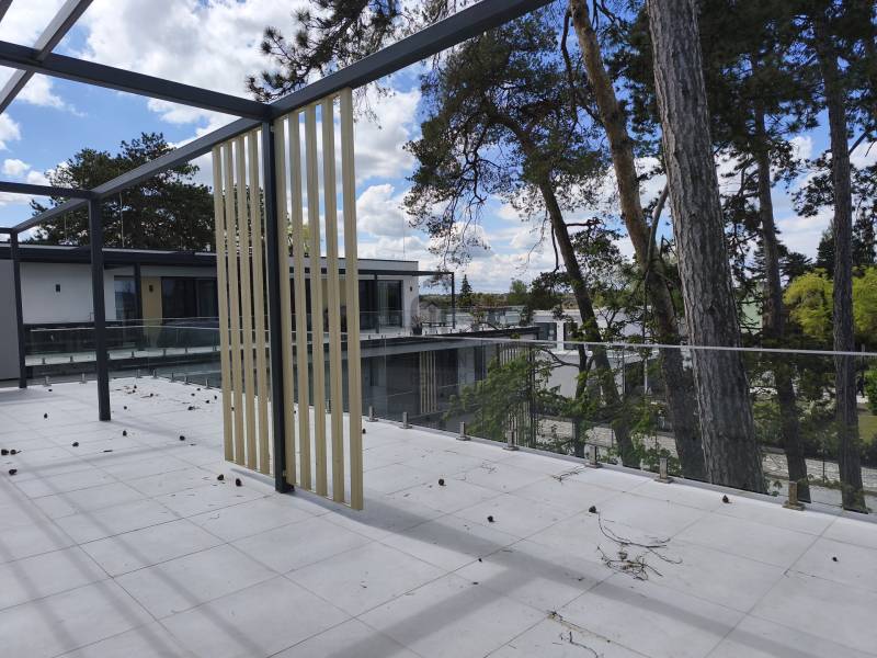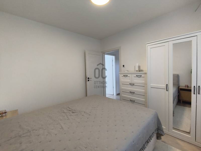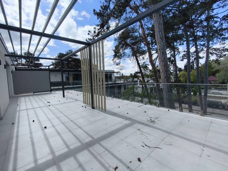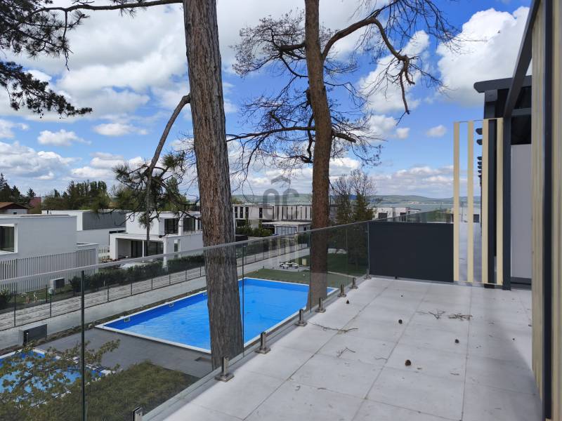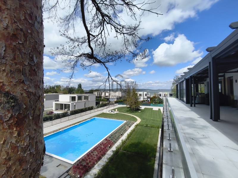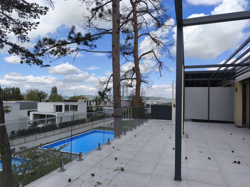 Balatonlellén, vízparti ősfás környezetben, új építésű, 78 m2-es penthouse, luxus lakás 68,18 m2-es terasszal, balatoni panorámával, komplett berendezéssel, 2 db felszíni parkolóval eladó.A lakás 29 lakásos, A+ energia besorolású társasházban található, a 2. emeleten, a penthouse szinten. Az épület tervezésénél a funkcionalitás mellett fő szempontok voltak az egyszerűség, az elegancia, a harmónia és a modernitás, ezek mellett a kedvező megközelítés, tájolási és panoráma adottságok kihasználása is. A lakóparkban felnőtt illetve gyermek medence is kialakításra került. Az ingatlan téglából épült, szigetelt, lapos tetős épület.Fűtését, hűtését és meleg víz ellátását 6 db Remeha levegő-víz hősszivattyú biztosítja, indirekt tárolón keresztül, padló fűtéssel illetve mennyezeti hűtéssel, helyiségenkénti vezérléssel, egyedi mérős elszámolással. Külső homlokzati nyílászárók: fa nyílászáró antracit színben, 3 rétegű hőszigetelő üvegezéssel, elektromos redőnyökkel.A világos, impozáns KNY-i tájolású lakás egy nappali-konyha-étkezőből, két hálószobából, egy kádas fürdőszobából, egy előszobából, egy vendég WC-ből áll. Az egyik hálószobából illetve a konyha-nappaliból lépünk ki a nagy méretű, Balatoni panorámás 68,18 m2-es, hangulatos teraszra.A lakás elhelyezkedéséből adódóan kiválóan alkalmas nyaraló és állandó lakhatásra illetve értékálló befektetésnek is.Az ár tartalmaz 2db felszíni parkolót, komplett berendezést, beépített konyhát gépekkel. Csak költözni kell.Balatonlelle a Balaton déli partján fekvő népszerű üdülőváros, amely több látnivalóval és élménnyel is vonzza a látogatókat.A város legismertebb strandja, finom homokos parttal, sekély vízzel és rengeteg programmal. Különösen családbarát, és itt található a vízi vidámpark is.A Kishegyen található kilátóból csodás kilátás nyílik a tóra. A környék borospincéiről is híres.Hangulatos sétákhoz ideális, innen indulnak sétahajók és kompjáratok is.Kérdéseivel bizalommal kereshet, szívesen állok rendelkezésére, hogy segítsek Önnek megtalálni álmai otthonát.Az adatok tájékoztató jellegűek.