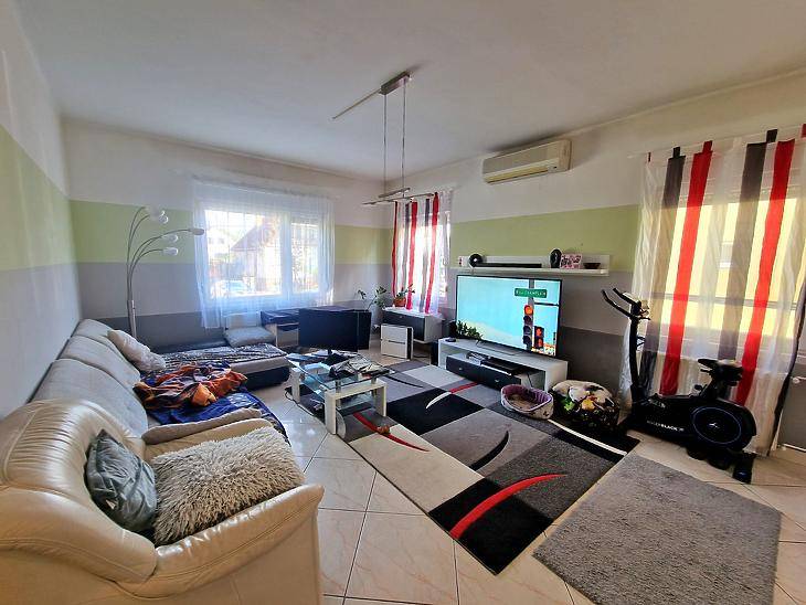 Dunakeszi csendes utcájában eladó egy tágas, alacsony fenntartási költségű, önálló családi ház!553 nm-es telken kínálunk megvételre egy bruttó 175 nm-es, két szintes ingatlant, amely ideális választás lehet azok számára, akik nyugodt környezetben keresnek jól kihasználható, élhető otthont.A ház jó elosztásának köszönhetően nappali, három szoba és egy félszoba biztosít kényelmes életteret, akár nagyobb család számára is. A közel 19 nm-es beépített terasz kellemes kiegészítője a mindennapoknak, tökéletes hely pihenésre vagy vendégek fogadására.Az ingatlan egyik nagy előnye az alacsony fenntartási költség: a 4,5 kW-os napelemrendszer jelentősen csökkenti a rezsit, míg a klíma a nyári komfortot biztosítja. A fűtés többféleképpen megoldott, gáz cirkóval és vegyestüzelésű kazánnal is működtethető. A kert öntözését fúrt kút segíti.A házhoz tartozik egy 36 nm-es pince és egy 21 nm-es garázs, így a tárolás és a parkolás is kényelmesen megoldott. A körbejárható épülethez tartozó kert jól használható, ideális pihenésre vagy családi programokra.Az ingatlan jó lehetőség azoknak, akik csendes környezetben keresnek egy tágas, önálló házat Dunakeszin.Megtekintési szándékával, vagy további kérdésével kérem keresse irodánkat. Amennyiben hitelre lenne szüksége a vásárláshoz, irodánk ingyenesen segít a legjobb hitel kiválasztásában és a folyamat lebonyolításában.