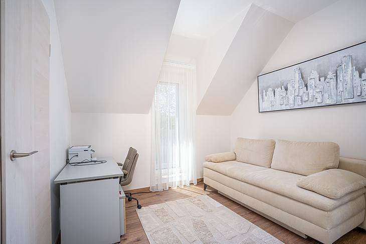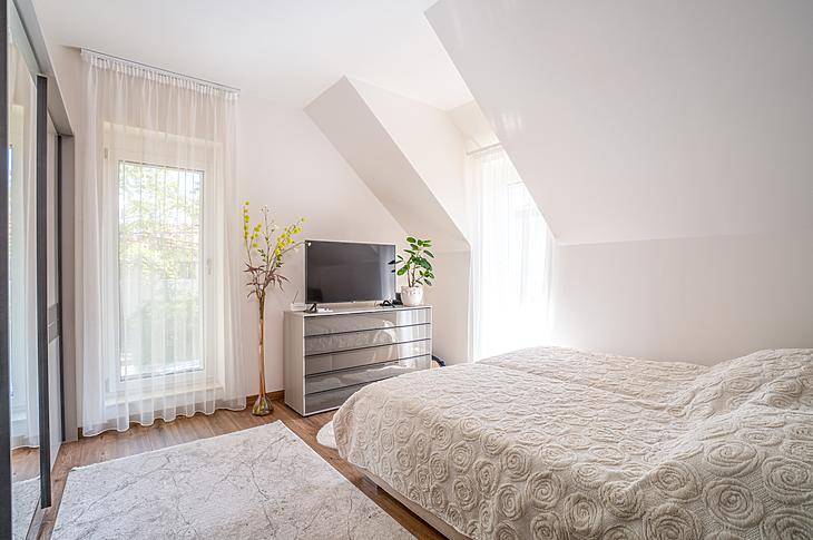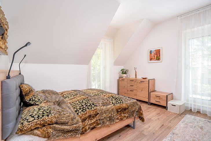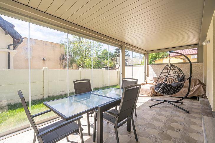 Csillaghegy DUNA felőli OLDALÁN eladó egy újépítésű ikerházfél!A 135 négyzetméteres, duplakomfortos ingatlan 2025-ben épült, 120 négyzetméteres kertkapcsolattal.Elosztása amerikai konyhás nappaliból, 3 szobából, 2 fürdőből és egy fűtött garázsból áll. Tartozik még a házhoz egy 21 négyzetméteres terasz is, valamint egy Bioklimatikus Pergola-ból élvezhetjük a kert nyugalmát.A szobákban laminált parketta, a vizes helyiségekben járólap található.Nyílászárói műanyag thermo üvegesek.A fűtésről hőszivattyú gondoskodik és padlófűtés található az egész házban.A házba elektromos redőny, és hűtő/fűtő klíma is beszerelésre került az elektromos kapu és kamerarendszer mellett.Környékről:Közelben minden olyan szolgálatás megtalálható amire szüksége lehet a mindennapokban (kisebb élelmiszer boltok, piac, éttermek, gyógyszertárak). Gyerekes családoknak nagyon ideális hiszen játszóterek, Óvoda, Iskola, Egyetem van a közelben.Tömegközlekedés szempontjából is tökéletes hiszen pár perc sétára található számos buszmegálló, illetve a H5-ös hév.Ha pedig kikapcsolódásra vágyik pár perc sétatávra elérhető a Duna part, ahol számos lehetőség van kikapcsolódni, sétálni, szórakozniPARKOLÁS A HÁZ ELŐTT ÉS KÖRNYÉKÉN INGYENES.FINANSZÍROZÁS:Banki finanszírozással is megvásárolható, melyben irodánk ingyenes tanácsadással áll rendelkezésükre!VEVŐINK RÉSZÉRE A KÖZVETÍTÉS DÍJTALAN!A beépített bútorzat a vételár részét képezi.A hirdetésben szereplő adatok tájékoztató jellegűek.
